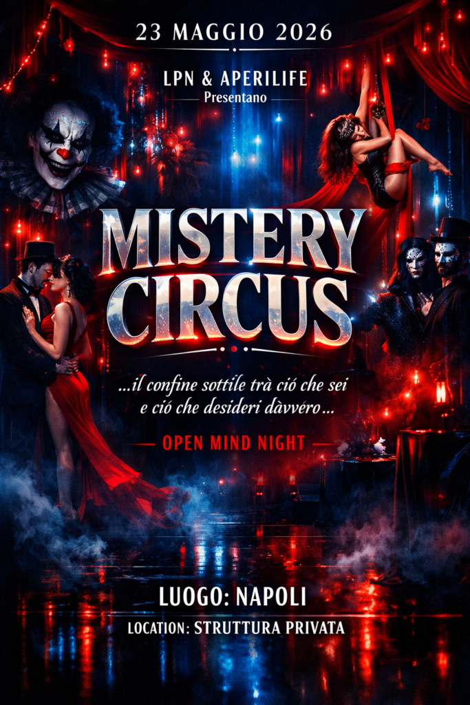 È il luogo dove tutto si mescola, eleganza e follia, maschere e verità. seta e pelle, caos e silenzio. Circus è l’unico luogo non luogo, dove a volte, il mistero siamo noi. Circus è l’ordinato caos che abbiamo dentro, un’estasi selvaggia che invade l’anima e accende il sangue. E’ il circo del vizio che seduce, della lussuria che sussurra, del piacere che si insinua lento. Luogo di fiamme che danzano, delle voglie nascoste, di corpi che ballano su musiche perverse. In Circus il desiderio non si nasconde, scivola tra la gente, penetra gli spazi e accorcia le distanze. Circus è libertà, è sfogo, è tensione pura! E’ l’ attrazione che cresce senza controllo, è il mondo degli sguardi catturati, di occhi celati capace di darti pace. Circus è il mondo del rispetto, della gentilezza, del garbo che ti cattura. E’ il Tempio del piacere, degli orgasmi, dei corpi è il circo della perdizione. Circus è il confine sottile tra ciò che sei e ciò che desideri davvero. E se senti qualcosa muoversi dentro, se l’ ignoto ti chiama senza voce, forse…sei già stato invitato. Benvenuti in Mistery Circus…e mi raccomando.. non ditelo a nessuno!!