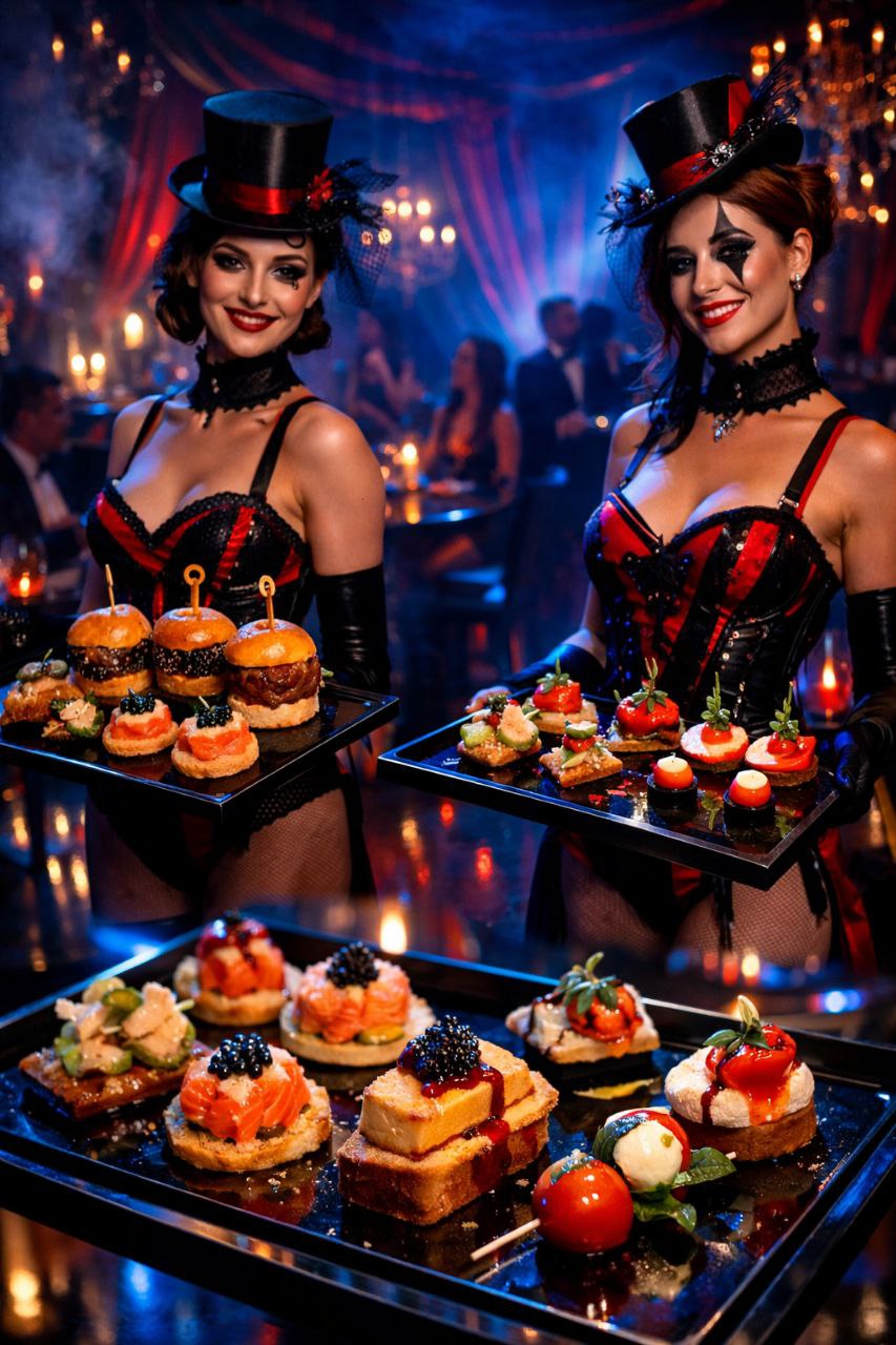 Tra gli sguardi degli ospiti iniziano ad apparire i performer dello straordinario BLACK CIRKUS: artisti, giocolieri, acrobati e figure misteriose che animano la sala con momenti di autentica arte circense.